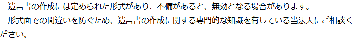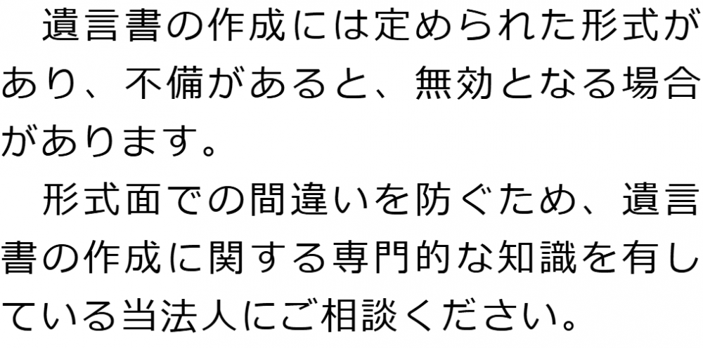遺言の作成、修正にはルールがあり、それに則っていないと無効となってしまうおそれがありますので、行政書士に相談し、形式的に問題のない遺言書作成をサポートしてもらうと安心です。