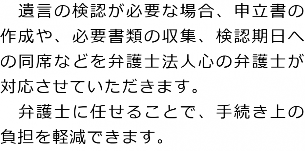 トップ業務内容遺言の検認 階層構造▼ 業務内容(目次) 遺言の検認 業務内容(目次)業務内容トップ行政書士法人心の業務内容遺言遺産整理相続人調査相続財産調査遺産分割協議書の作成預金・貯金の解約・名義変更証券口座の解約・名義変更自動車の名義変更心グループのその他の業務内容家族信託・民事信託節税対策事業承継遺言の検認相続放棄限定承認遺産分割遺留分侵害額請求相続登記相続税申告相続税調査 受付時間 平日 9時~21時、土日祝 9時~18時 夜間・土日祝の相談も対応します (要予約) 所在地 〒460-0008 愛知県名古屋市中区栄3-16-1松坂屋名古屋店本館7F 0120-2403-39 お問合せ・アクセス・地図